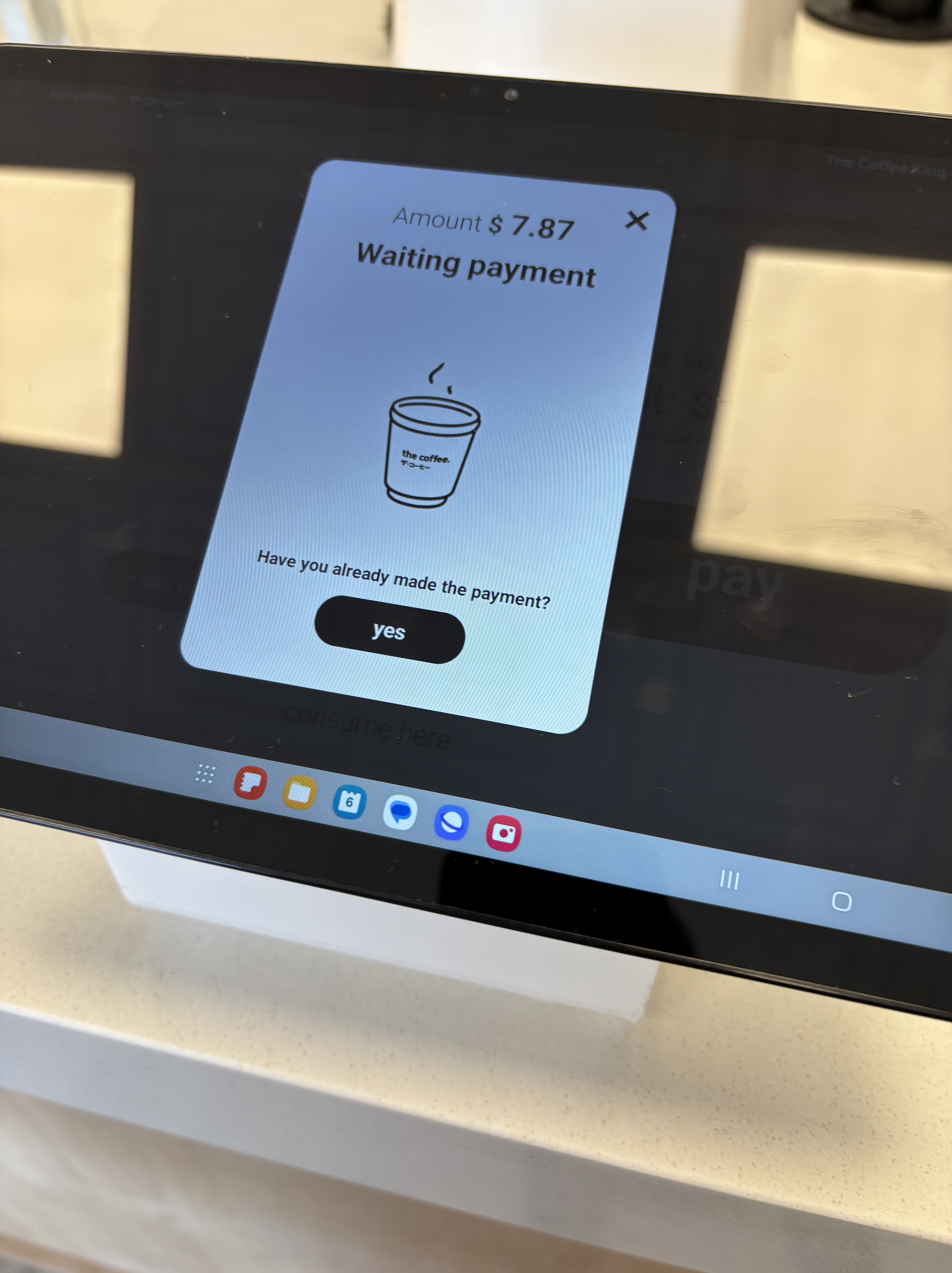 Ordering was a somewhat unique experience compared to other cafes in Toronto. Rather than place your order with the barista, you entered it on a tablet at the counter — kind of like a step up from the automated kiosks you often see at fast food restaurants. The barista was available to explain the system to me, though I asked few questions, flipping through the menu app myself to find that coveted matcha latte. All I saw (and later confirmed on their website) was a vanilla matcha latte in a single size, with no option to remove the vanilla – though I’m sure if I asked, they would have accommodated. If there was an option to toggle sweetness levels, it wasn’t obvious in the app.